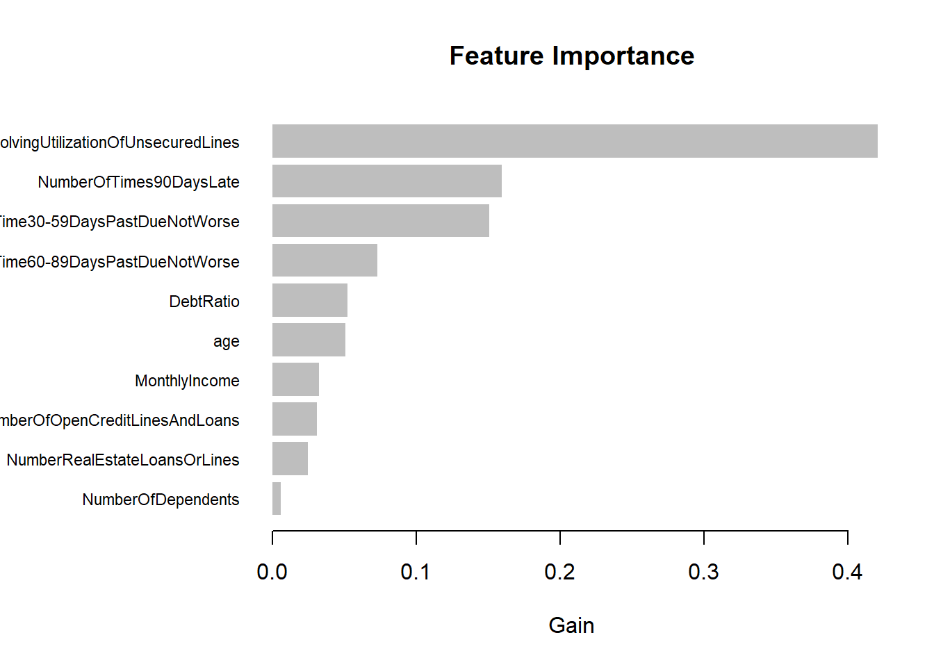 ##  3: NumberOfTime30-59DaysPastDueNotWorse 0.150011588 0.10402867 0.05512821
