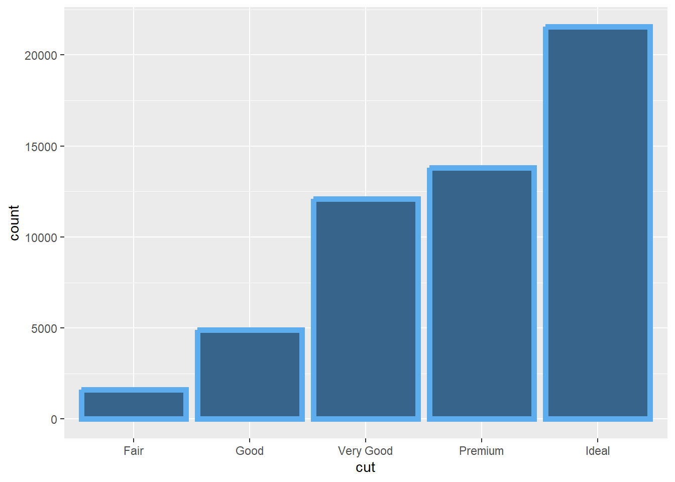 stat_count(mapping = aes(x = cut), color = "steelblue2", size = 2, fill = "steelblue4") +