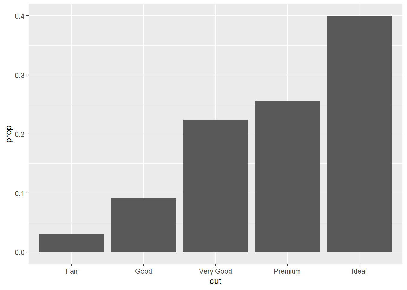 geom_bar(mapping = aes(x = cut, y = after_stat(prop), group = 1)) +
