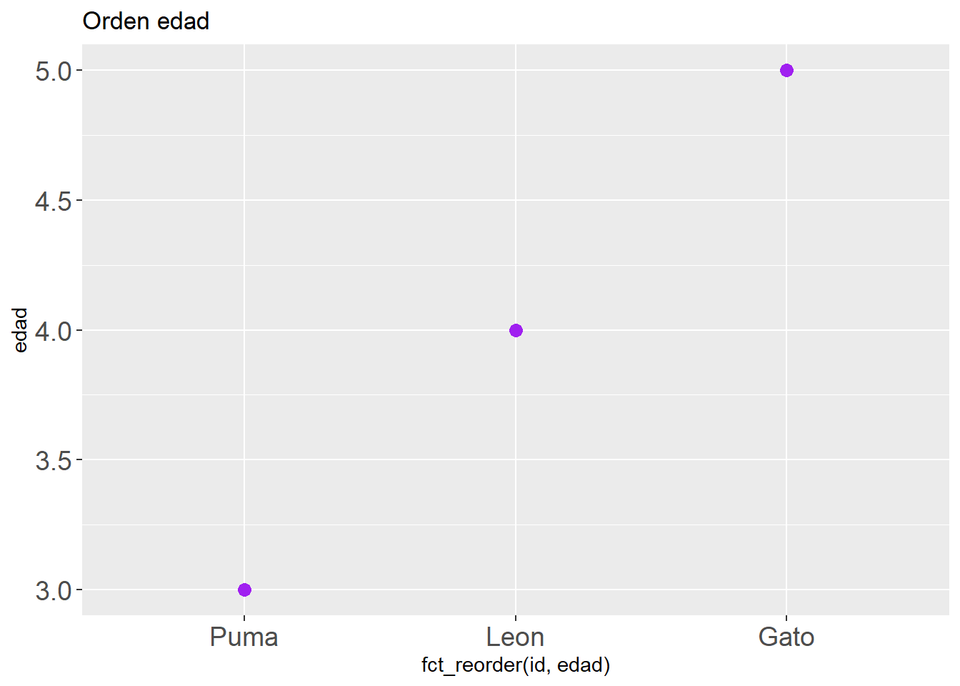 geom_point(aes(x=fct_reorder(id, edad), y = edad), color = 'purple', size = 3) +