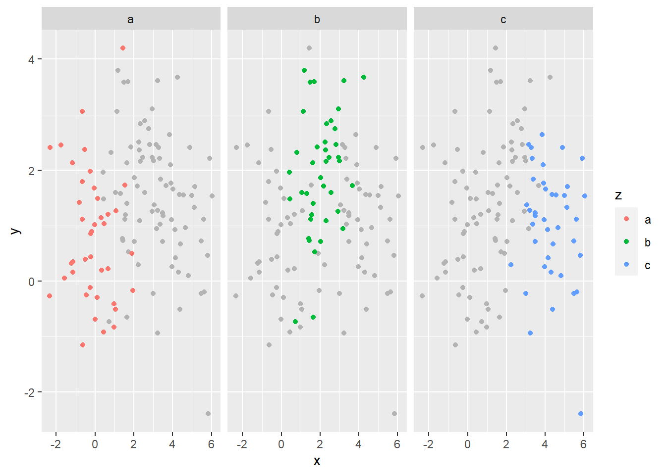 geom_point(data = df2, colour = "grey70") +